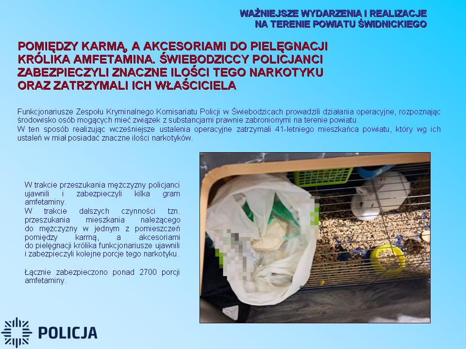 W roku 2024 świdniccy policjanci zabezpieczyli blisko 8 kg narkotyków, które nie trafiły na ulice powiatu świdnickiego. W ramach prowadzonych postępowań karnych policjanci zabezpieczyli mienie o wartości ponad 3,6 milionów złotych.