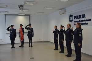 Podczas uroczystości Komendant insp. Tomasz Kościcki pogratulował policjantkom wyboru tej wyjątkowej i odpowiedzialnej drogi zawodowej, podkreślając, że mogą być dumne ze swojego wyboru i służby na rzecz bezpieczeństwa mieszkańców naszego powiatu.
