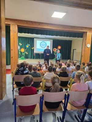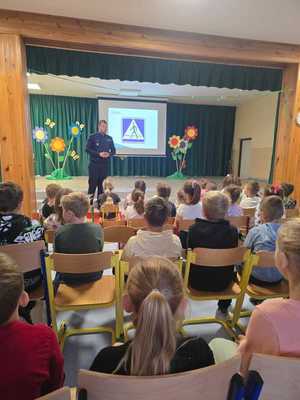 W środę młodszy aspirant Rzepecki Michał spotkał się z uczniami Szkoły Podstawowej w Mokrzeszowie, aby porozmawiać na temat bezpieczeństwa w drodze do szkoły.