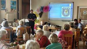„ Jak nie dać się oszukać” pod takim hasłem młodszy aspirant Rzepecki Michał przeprowadzał kolejne działania z zakresu bezpieczeństwa osób w wieku senioralnym. Tym razem grupa seniorów mogła uczestniczyć w spotkaniach w klubach seniora na ul. Mieczysława Kozara-Słobódzkiego oraz na ul. Saperów w Świdnicy. Była to kontynuacja działań profilaktycznych realizowanych w ramach XX obchodów Dni Seniora w Świdnicy. Podczas spotkań uczestnicy dowiedzieli się jak nie paść ofiarą oszustwa na legendę na tzw. „ wnuczka” bądź „ policjanta”. Poza tym dość sporą uwagę poświęcono inwestycją internetowym, jak bezpiecznie lokować zarobione pieniądze oraz jakich aplikacji należy się wystrzegać. Na koniec funkcjonariusz przypomniał jaką funkcję pełni policjant dzielnicowy oraz w jaki sposób można skontaktować się ze swoim dzielnicowym.