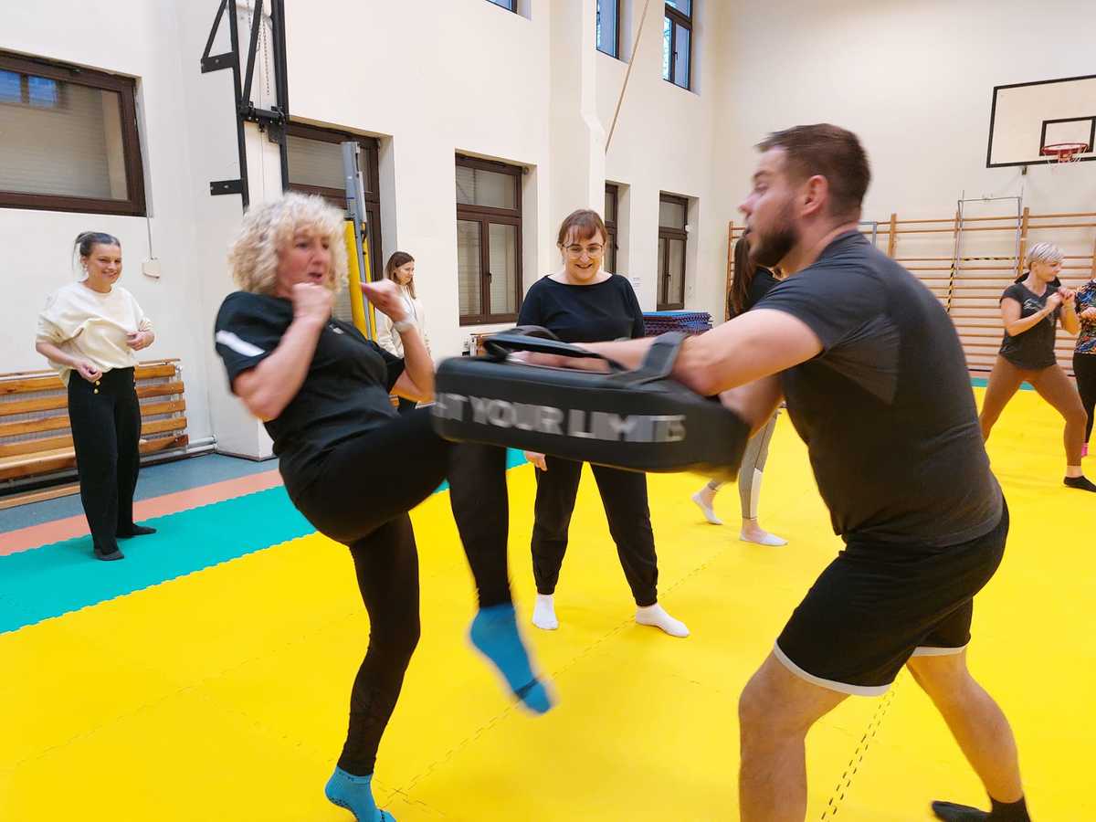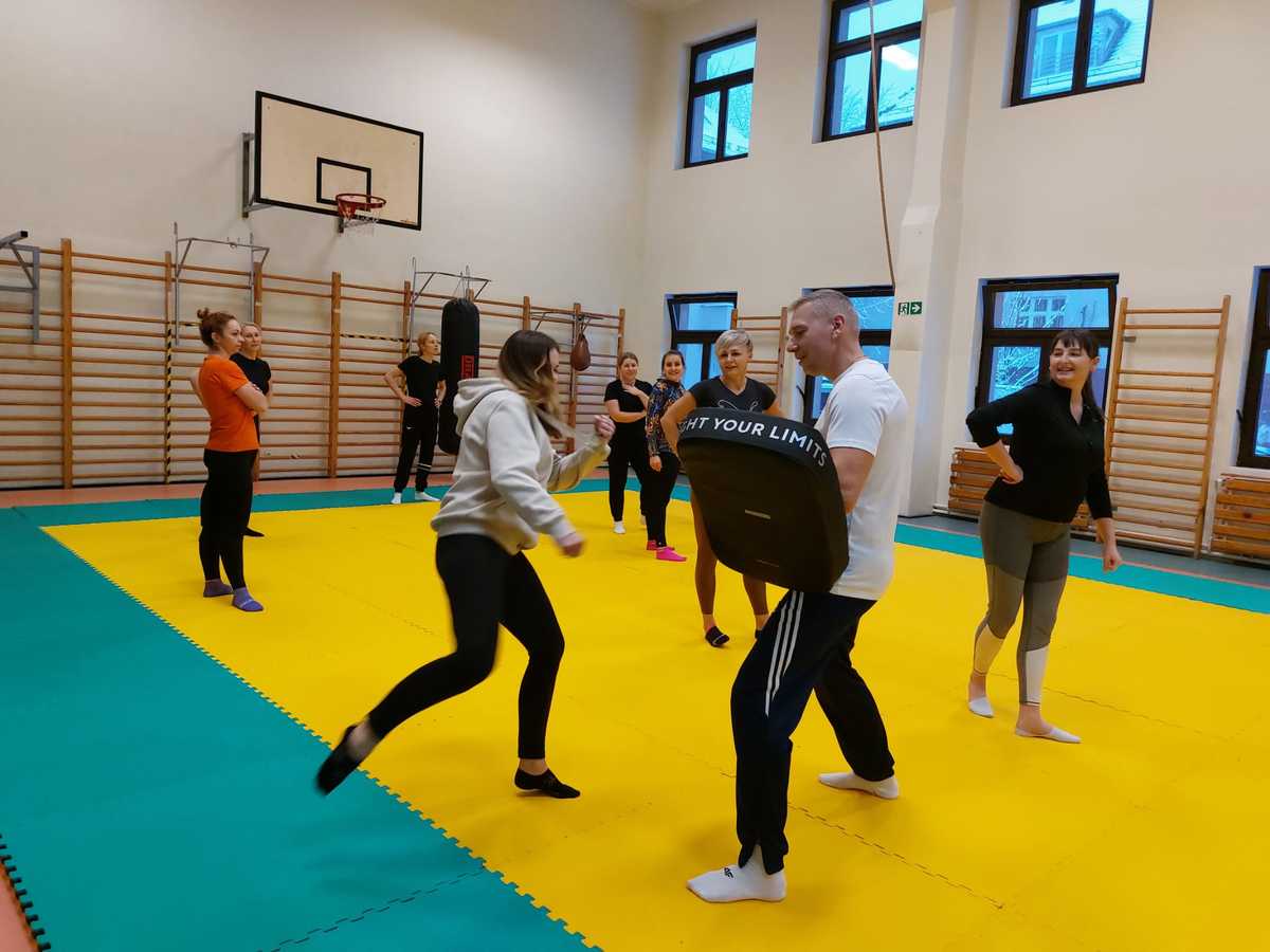 Instruktorzy krok po kroku prezentowali skuteczne techniki samoobrony, uczyli sposobów unikania niebezpiecznych sytuacji, a także reagowania w momentach nagłego zagrożenia. Uczestniczki miały okazję poznać podstawy obrony, pracować nad poprawą koordynacji ruchowej oraz sprawdzić własne możliwości działania w sytuacjach wymagających opanowania i szybkiej reakcji.