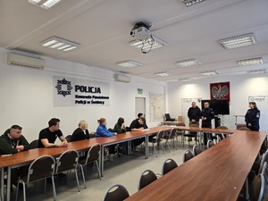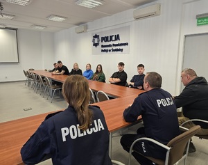 Spotkanie rozpoczęło się od rozmowy z Komendantem Powiatowym Policji w Świdnicy insp. Tomaszem Kościckim oraz podinsp. Agatą Oleśkiewicz – Naczelnikiem Wydziału Dochodzeniowo-Śledczego, którzy przybliżyli studentom strukturę jednostki, zakres realizowanych zadań oraz rolę Policji w systemie bezpieczeństwa wewnętrznego.
