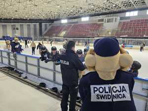 Podczas trwających ferii zimowych świdniccy policjanci odwiedzili lokalne lodowisko, aby spotkać się z dziećmi i młodzieżą oraz promować bezpieczne zachowania w czasie zimowego wypoczynku. Mundurowi rozmawiali z uczestnikami zajęć o zasadach bezpieczeństwa na lodzie, właściwym korzystaniu z infrastruktury sportowej oraz o konieczności noszenia kasków i ochraniaczy podczas jazdy na łyżwach.