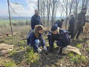 Funkcjonariusze aktywnie zaangażowali się w sadzenie młodych drzew, wspierając tym samym działania związane z odbudową i rozwojem terenów leśnych.