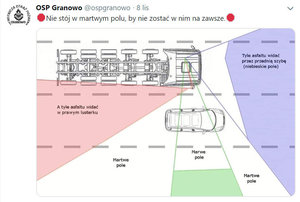 PAMIĘTAJMY ! Ta wiedza jest niezwykle ważna zarówno dla pieszych, jak i dla kierowców pojazdów osobowych. Piesi, którzy zamierzają wejść na przejście przed stojącym nieopodal pojazdem ciężarowym, powinni się upewnić, że są widziani przez jego kierowcę. W przeciwnym wypadku nie warto ryzykować.